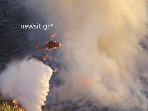 - Ο δυνατός αέρας στην περιοχή δυσκολεύει πολύ τις προσπάθειες των πυροσβεστών